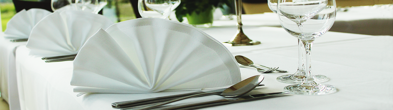 | Catering cloth Napkins: | white, champagne, checkered, damask | 100% cotton, two-ply | 50x50 cm, 40x40 cm, 30x30 cm, 12x12 cm |